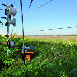 Aggregatet är lätt att flytta och ansluta. Detta elstängselaggregat har två olika lägen. I läge 1 ger aggregatet en standardpuls, med maximal effekt. I läge 2 ger aggregatet en puls vid 100 % följt av tre pulser vid 50 %. Det betyder att batteriet räcker längre samtidigt som stängslet ändå har maxi