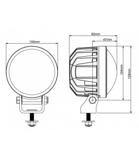 En LED arbetslampa med 9 dioder som ger en bred ljusbild, 1492 verkliga lumen (2160 teoretiska). Lampan har aluminiumhus, polykarbonatglas och rostfritt M8-fäste. Vikt: 0,80 kg.