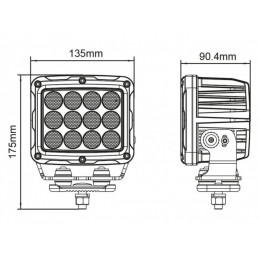 En LED arbetslampa med 9 dioder som ger en bred ljusbild, 1492 verkliga lumen (2160 teoretiska). Lampan har aluminiumhus, polykarbonatglas och rostfritt M8-fäste. Vikt: 0,80 kg.