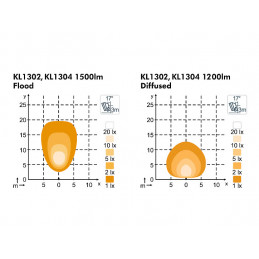 En LED arbetslampa med 9 dioder som ger en bred ljusbild, 1492 verkliga lumen (2160 teoretiska). Lampan har aluminiumhus, polykarbonatglas och rostfritt M8-fäste. Vikt: 0,80 kg.