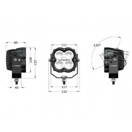 En LED arbetslampa med 9 dioder som ger en bred ljusbild, 1492 verkliga lumen (2160 teoretiska). Lampan har aluminiumhus, polykarbonatglas och rostfritt M8-fäste. Vikt: 0,80 kg.