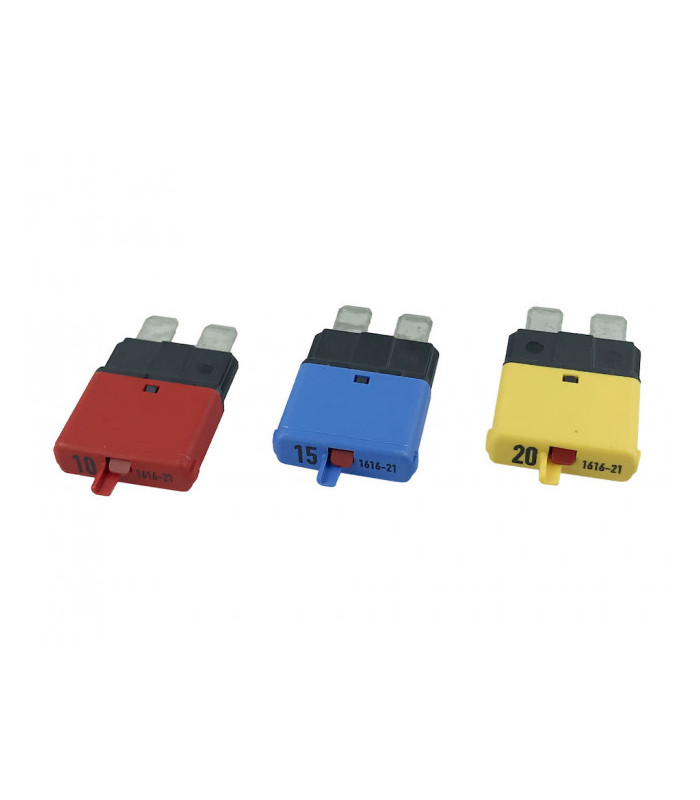 Avsedd att monteras istället för flatsäkringar (lämplig för teständamål). När säkringen löst ut ska den svalna 30 sekunder, därefter kan den användas på nytt.