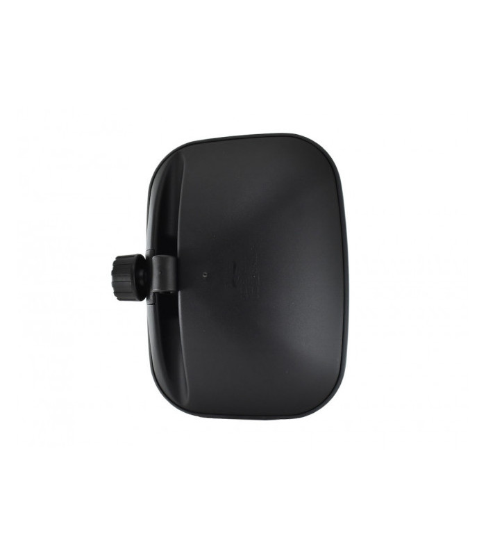Spegelhuvud med rattfäste och backstycke i plast. R=2000. 250x150 mm. Finns med både klammer och rattfäste. Stång med plastknopp och plantglas att tillgå.