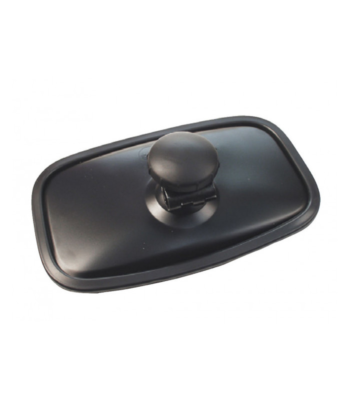Spegelhuvud med bakstycke av kraftig svart plast, spegelglas ingår.