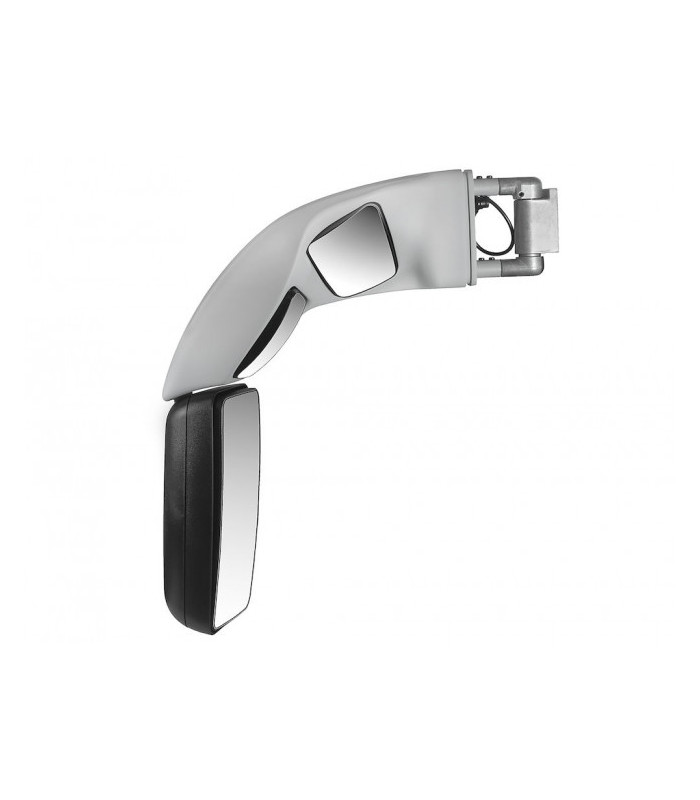 Eljusterbar backspegel med bakstycke i kraftig svart plast för montering på höger sida. 24 V. R=1800. 384x205 mm. Komplett med arm.