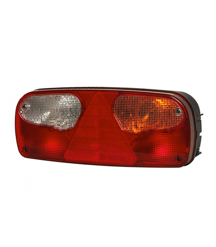 Back-, dimbak-, blinkers-, bak-, broms-, sido- och positionslampa. Inbyggd 3-kantsreflex. Inkl. 24V glödlampor.