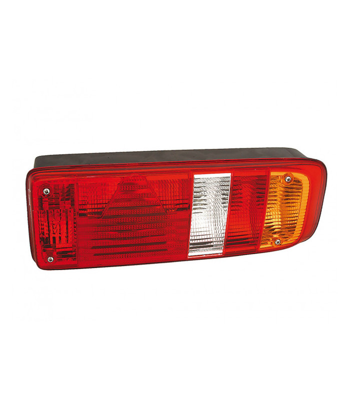 För vågrätt påbyggnad på släpfordon. Bak-, broms-, dimbakljus, och röd triangelreflex. 7-polig EasyConn skarvkabel, vibrationsdämpning och 24 V glödlampor. Vänster- alternativt högerutförande. Dubbel glödlampsbestyckning i bakljusfältet.