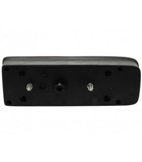 Baklykta höger alt. vänster. 370 x130 mm med triangelreflex, PG förskruvning, för vågrät påbyggnad på släpfordon. Hus av svart plast, 2 st fästskruvar M8. Levereras med 4 st vibrationsdämpare.