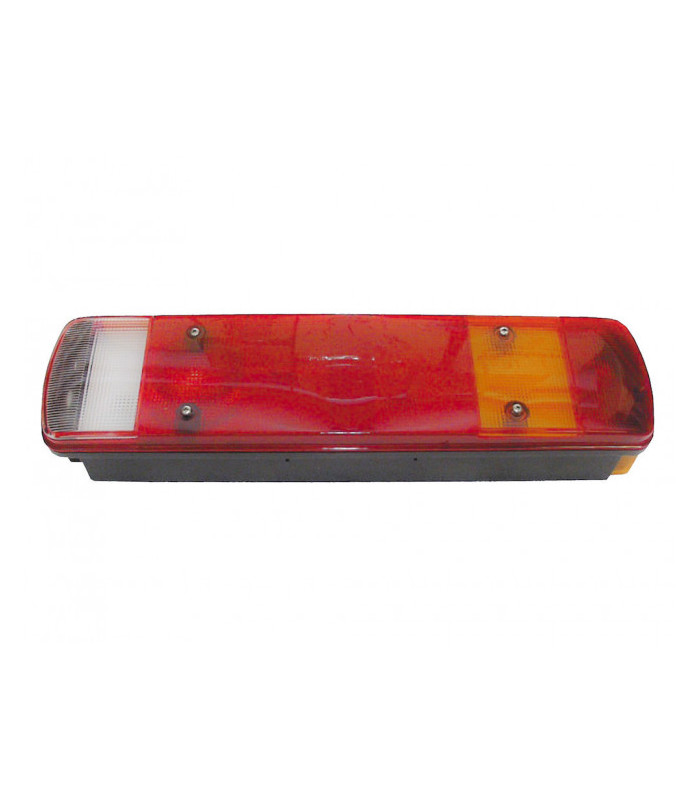 Back-, dim-, bak-, reflex-, broms-, blink- och positionslampa samt sido- markeringslampa med reflex. Finns i vänster/högerutförande samt vänsterutförande med skyltbelysning. Lampan förekommer bl.a. på Scania-4 serien. M8 fästbultar.