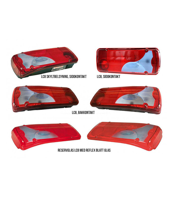 ADR-godkänd baklampa originalmonterad på kända lastbilstillverkare. Alla lampor har sidomarkeringslampa och reflex. Lampan går att få med bakkontakt eller sidokontakt. Se artikellista för rätt utförande. 7-stifts AMP-kontakt i anslutningen.