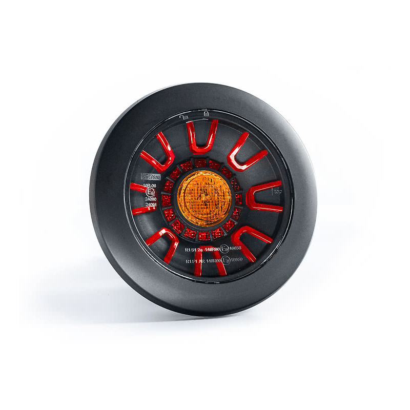 Baklampa LED-lampa med 3 funktioner och med en låg strömförbrukning. Europeisk homologation E9 – endast horisontell montering. Elektromagnetisk kompatibilitet (EMC); R10-homologering. Stöttålig PC-lins. Skyddssystem för omvänd polaritet. Dynamisk blinkers. Rökfärgat glas. Lampfunktioner: