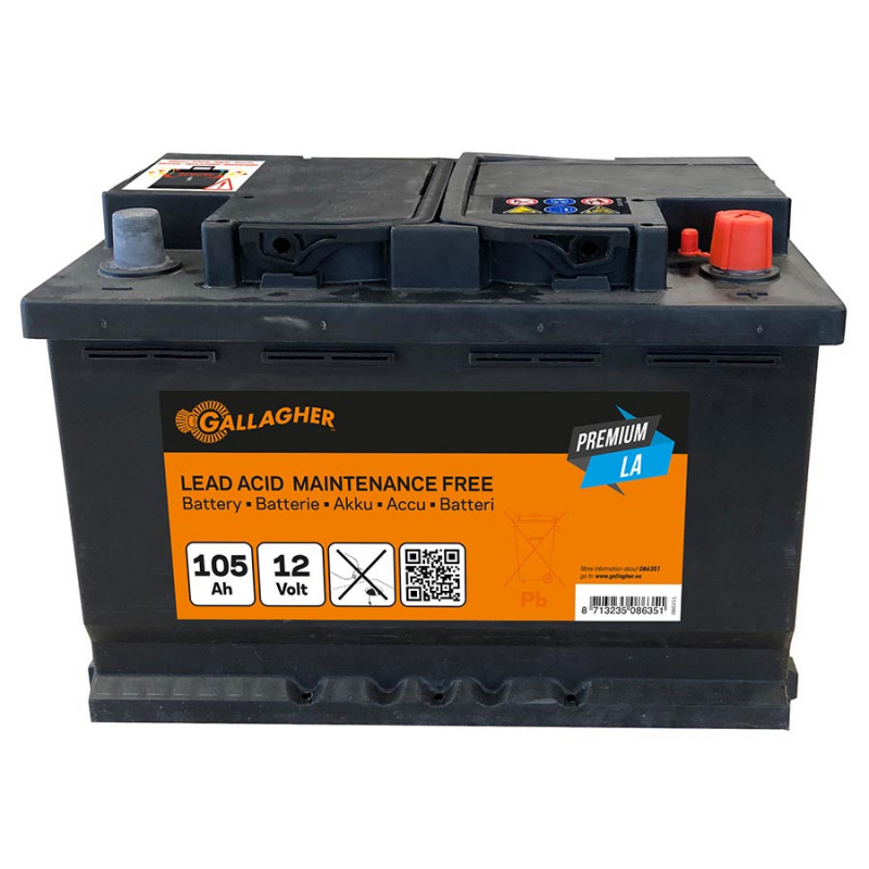 Gallagher Premium Blybatteri 12V/80Ah - 278x175x190Väljer du ett underhållsfritt batteri? Välj då Gallagher 12V PREMIUM La-batterier. Detta batteri har en längre livslängd än det vanliga 12 V-batteriet.Passar alla 12 V-elstängselaggregat och kan eventuellt kombineras med en solpanel.