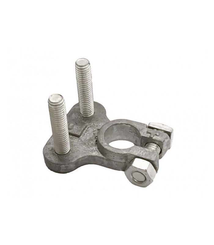 2-polig kromaterad batterifrånskiljare. Kapacitet: 400 A i 30 s med 25 mm² kabel, 600 A i 30 s med 70 mm² kabel. Bultar M10, fästhål 8,5 mm. Levereras komplett med nyckel och dammskydd av gummi.
