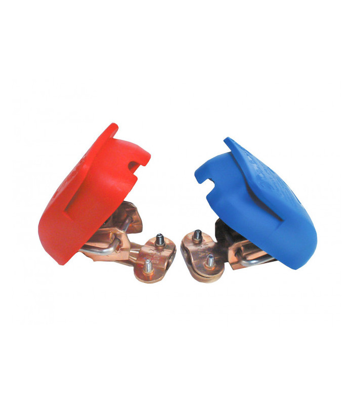 2-polig kromaterad batterifrånskiljare. Kapacitet: 400 A i 30 s med 25 mm² kabel, 600 A i 30 s med 70 mm² kabel. Bultar M10, fästhål 8,5 mm. Levereras komplett med nyckel och dammskydd av gummi.