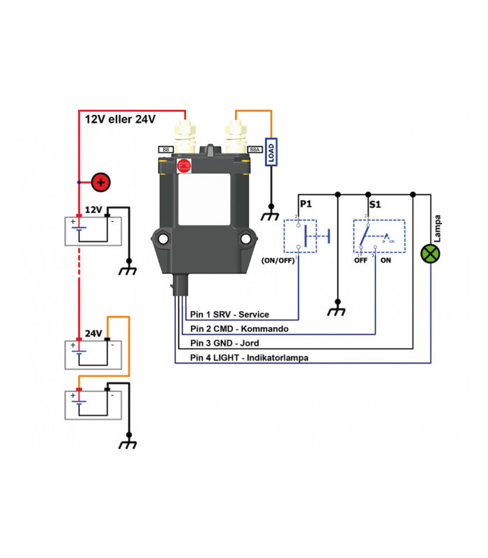 Kraftigare modell för truckar, entreprenad-maskiner, större nöjesbåtar och tyngre fordon inom industrin, bryter på både plus- och minuspol.
