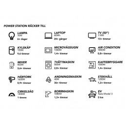 • 1800 W ren sinusinverter. 1440 Wh bärbar strömkapacitet