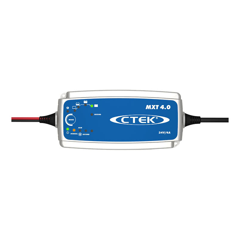 MXTS 40 är en batteriladdare från CTEK med både 12 och 24 V. Den är tillverkad i karbonatplast samt är gnist- och kortslutningssäker och polaritetsskyddad, detta för att klara av tuffa förhållanden. Batteriladdaren har en OLED-skärm som visar 8-stegsladdningen samt ger information om ström och sp