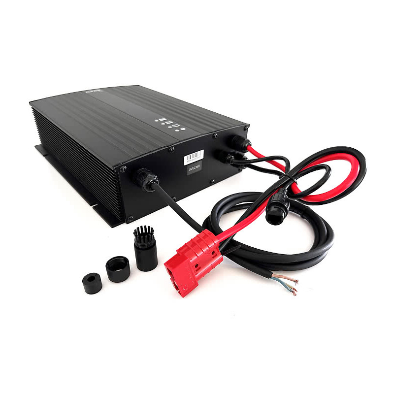 CTEK I2440 kan anpassas med olika laddningskurvor beroende på batterityp och användningsområde. Den registrerar också parametrar från de 200 senaste laddningscyklerna i efterlevnadssyfte. I2440 has Drive Off-skydd och robust IP64-aluminiumhölje. I2440 har också intelligent kompensation för kabelförlust för ännu snabbare laddning och använder avancerad teknik för sitt switchläge med hög frekvens. Med en omvandlingseffektivitet på upp till 94 % ger I2440 låga koldioxidutsläpp och lägre strömförbrukning i allmänhet.