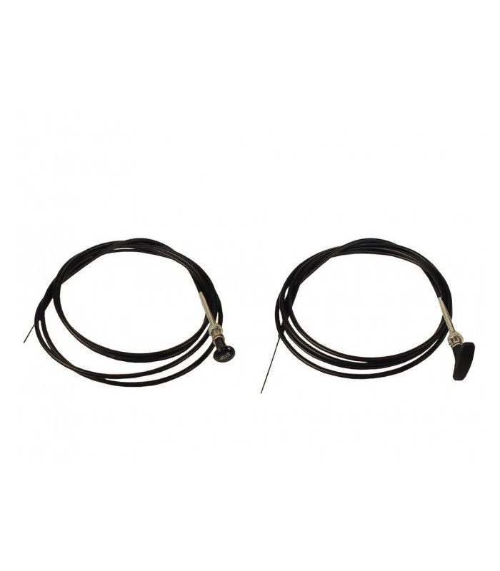 Choke- och stoppreglage med plastat ytterhölje med svart T-handtag eller knopp. Finns med eller utan spärr. 84113 och 84086 är med T-handtag, övriga med knopp.