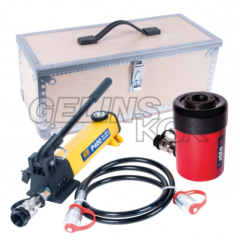 Hålcylinder HC2002T 20 ton med handpump P400, slang 2 m och snabbkopplingar.