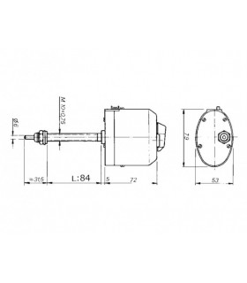 DOGA torkarmotor modell 112 med 6 mm axeldiameter. Utan parkeringsläge. Enpunktsfastsättning. Klämlängd 84 mm. Max kapacitet 40 kp cm. Kontinuerligt vridmoment ca 8 kp cm. Strömställare i höljet. Max. längd 500 mm arm/blad tillsammans. Om axellängden kapas måste insatshylsan på nytt träs på axeln.