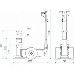 Beskrivning Mammut är en serie lufthydrauliska domkrafter konstruerade och tillverkade för att erbjuda alla kunder en lösning som är säker och enkel att använda vid lyftning av större maskiner. Detta innebär: