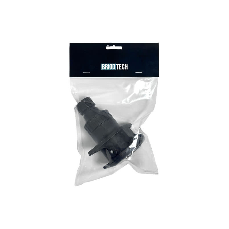 EBS-dosa, 7-polig. Levereras komplett med 2x6,0 mm² + 5x1,5 mm² stift. ADR-godkänd. Med skruvar i kabelanslutningarna. Levereras med påse och ryttare för butik.