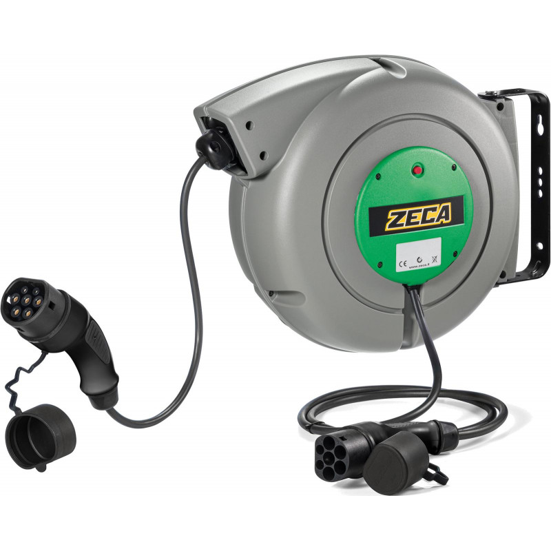 ZECA:s kabelvindor för elbilsladdning gör det enkelt att ladda ditt fordon, hålla ordning i garaget och skydda kablarna mot slitage. Elkabelvindorna har mycket hög kapacitet och är tillverkade för kontinuerlig användning. Vindorna är tillverkade av slagtålig plast. Elöverföring i vindan sker med släpskor. Utrustad med svängbart väggfäste.