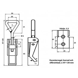 Excenterregel, borrad och elförzinkad, L=91 mm. Inkl. hake.