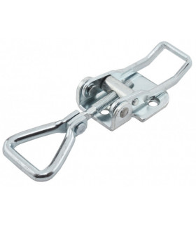 Excenterlås med ställbar låsbygel med M6 gänga. Utan låsögla. Tillverkat av kallvalsad stålplåt. Elförzinkat med 5,2 mm försänkta hål L=115-125 mm. Lockbeslag/krok säljes separat.