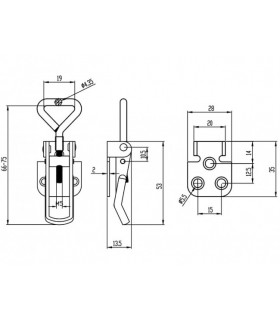 Excenterlås med ställbar låsbygel med M5 gänga. Utan låsögla. Obehandlat, elförzinkat eller rostfritt. L=66-75 mm. Lockbeslag/krok säljes separat.