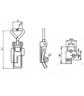 Excenterlås med ställbar låsbygel med M5 gänga och mutter. Elförzinkat eller rostfritt. L=67-77 mm. Lockbeslag/krok säljes separat.