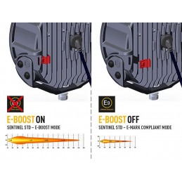 Både Sentinel Standard och Elite har ett E-boostläge som kan aktiveras i de fall där man kör off-road och vill ha en ljusstyrka så stark att den inte är godkänd att användas på allmänna vägar. Genom en enkel manöver ändrar du tillbaka till det E-godkända standardläget.