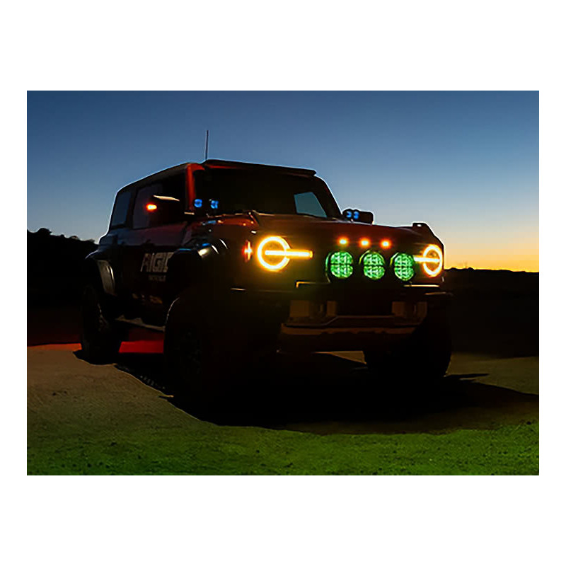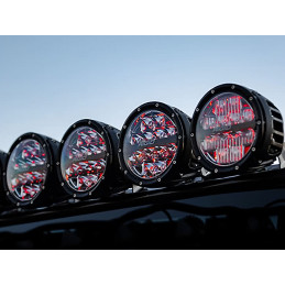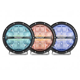 Inuti är 360-seriens RGBW-extraljus fullmatade med funktioner, med ett svart exponerat kretskort, optimerad framåtriktad optik och en färgskiftande bakgrundsbelysning som låter dig växla mellan åtta tillgängliga belysningar med en knapptryckning: röd, grön, blå, ljusblå, lila, bärnsten, vit eller demoläge. Detta 9-tums extraljus är utrustat med Spot och Drive ljusbild för en anpassad upplevelse och snyggt utseende. RIGID:s 360-serie RGBW runda lampor integreras sömlöst i flera olika sorters installationer.