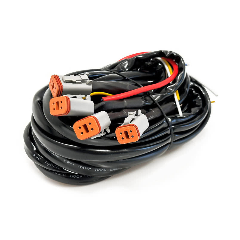 Extraljuskablage med relä för upp till 3 st extraljus. Kontakt säljs separat vid behov. Säkring 40 A. Kabel 1,5 m. Max 3x150 W.
