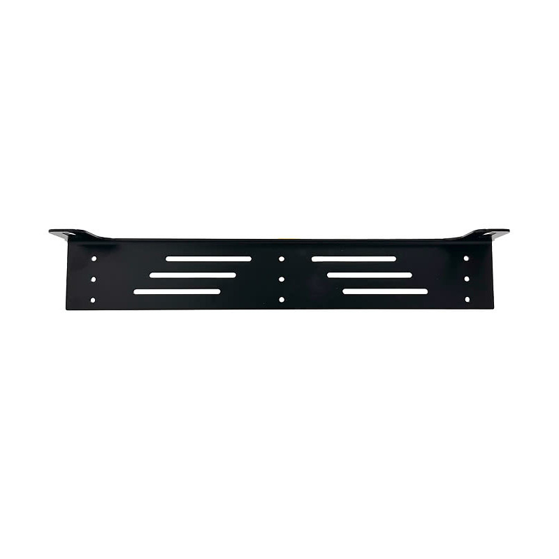 Extraljusfäste för 1 st 22” extraljusramp (560 mm). Monteras bakom nummerskylten. Hålbilden är 8 x 17 mm på de två sidohålen. Svartlackerat plåtfäste.