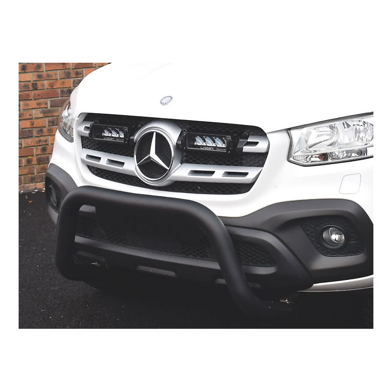 Ledrampskit med 2 st Triple-R 750 och alla ingående komponenter skräddarsydda för att monteras på Mercedez Benz X-Class 2017+. Monteringen görs enkelt och snabbt med ett resultat som är både robust, säkert och smälter in perfekt i originalgrillen. Fästena är tillverkade av ASA-material, kända för