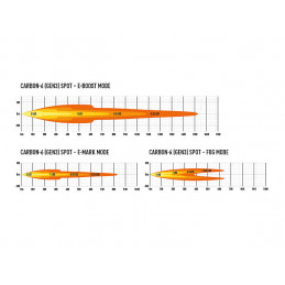 De högintensiva 11W-dioderna i Carbon-6, samt 3W Matrix LED-lamporna, finjusterade för de specifika kraven inom motorsport ger tillsammans en enastående ljusprestanda med ultrareflekterande vakuummetalliserad boostoptik. Carbon-6 finns med både Spot och Drive-ljusbild. Tack vare det ultralätta lamphuset som finns i både kolfiber och 3D-printat material väger rampen ynka 420 g och gör att rampen har ett imponerande förhållande mellan effekt och vikt vilket tidigare inte skådats inom bilbelysning.