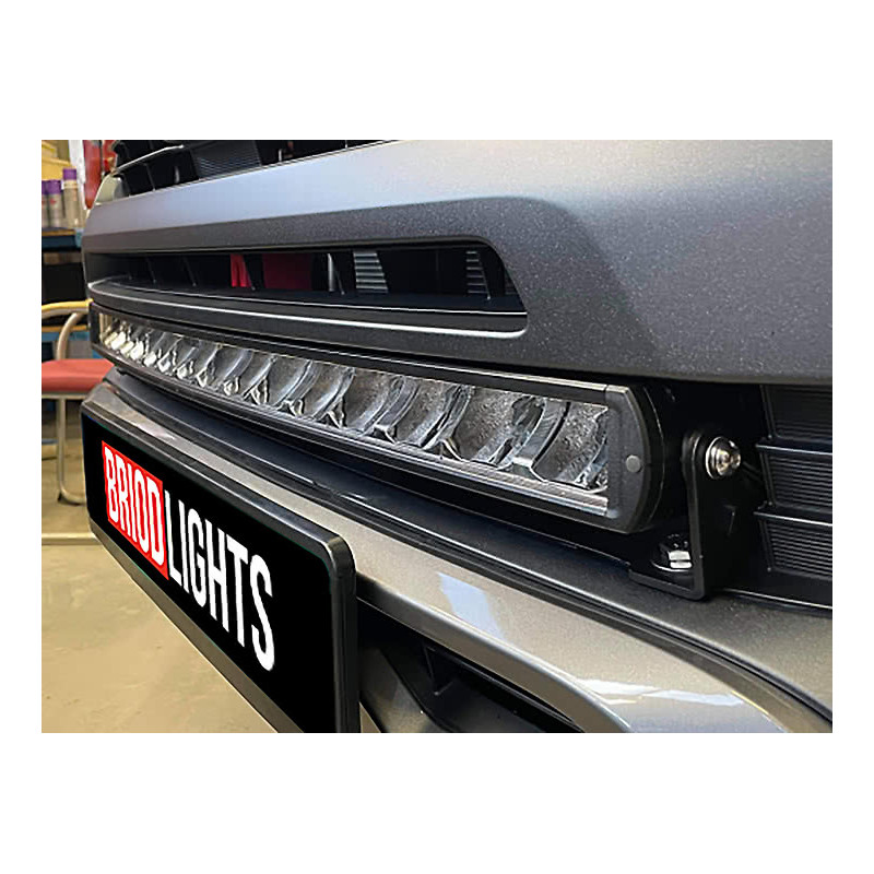 BriodLights dubbelradig ljusramp med 5 W Osram LED i svart aluminiumhölje med sotat glas. Fäste i rostfritt stål. 9-36 V, 5700K. Combo Beam. Vitt och orange parkeringsljus med dynamisk start. Längd: 560 mm, höjd 70 mm, djup 67 mm. IP68/IP69K, E-märkt. ref. 50 (lux). ECE R10, R112, R7, CE. Levereras
