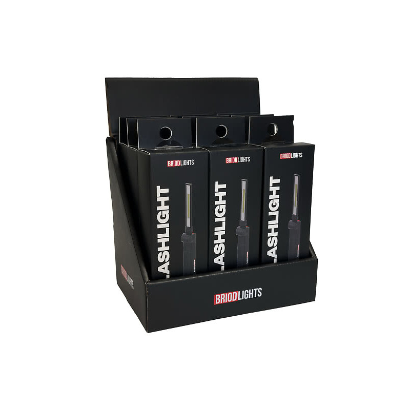Kraftfull ficklampa från BriodLights med flexibel design och lång driftstid. Upptäck vår robusta ficklampa som kombinerar COB-main och 1SMD-torch belysning för att ge dig optimal ljusstyrka och mångsidighet. Med en ljusstyrka på 250 lumen i front-läge och 70 lumen i torch-läge, samt en färg