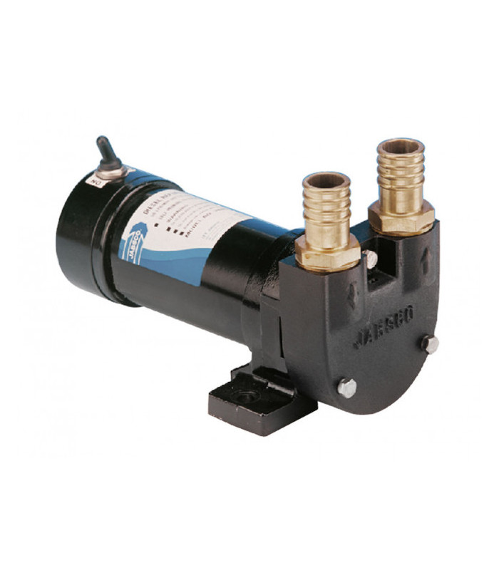 Pump VR050 levereras med strömbrytare, säkring och slanganslutning. Strömförbrukning: 12V/15A eller 24V/6A. Max kapacitet: 50 L/min. Max tryckhöjd: 10M. Max sughöjd: 3M. Anslutning: 1” slang eller 3/4 gänga. Kont. drift: vid max 0,3 bar. IP-klass: 55