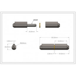 Gångjärnsblad från Pommier med en längd på 143 mm eller 163 mm.