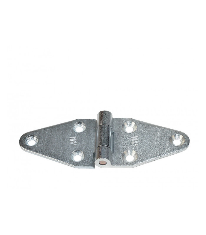 Gångjärn i galvaniserat utförande med plana skänklar och smörjnippel. Totallängd 240 mm, 120+120 mm. Höjd leddel 80 mm. Godstjocklek 6 mm.