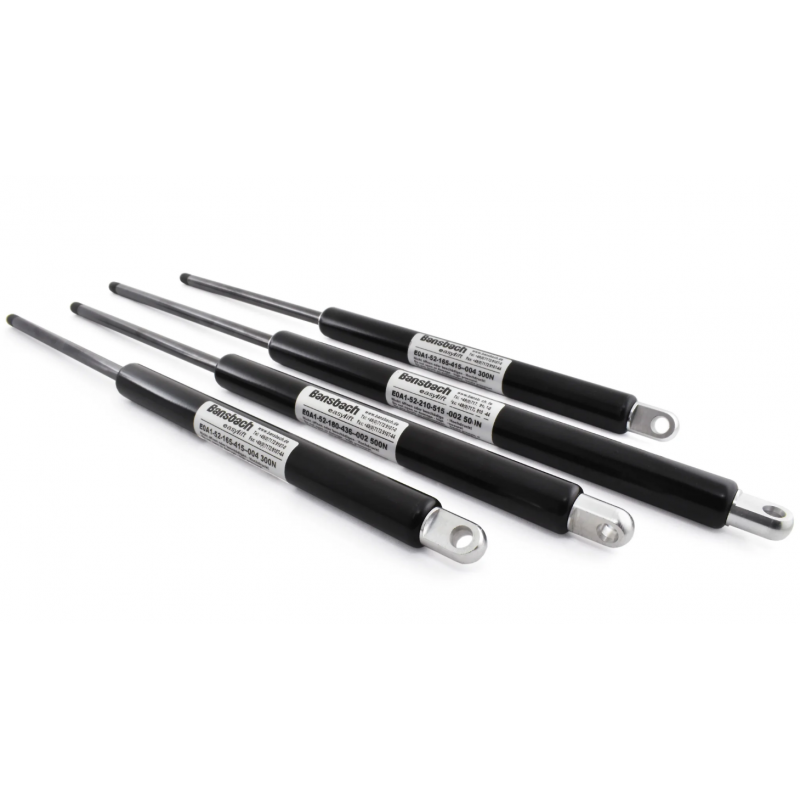 Gasfjäder med fast ögla 8,2 mm hål. M8 eller M10 gänga i kolvstången. Bansbachfjädrarna har en svart, keramisk ytbehandling på kolvstängerna. Teknisk beskrivning:Bansbach gasfjäder fungerar vid temperaturer mellan -30°C till +80°C. En gasfjäder påverkas av omgivande temperaturer vid anv