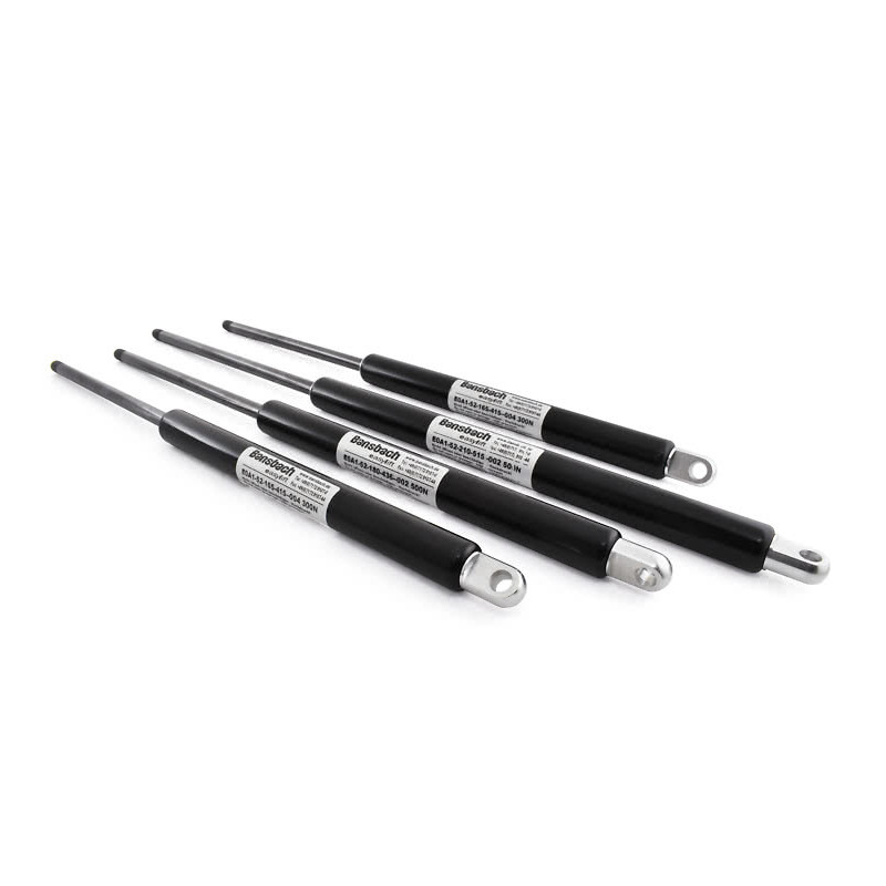 Gasfjäder med fast ögla 8,2 mm hål. M10 eller M8 gänga i kolvstången. Bansbachfjädrarna har en svart, keramisk ytbehandling på kolvstängerna.