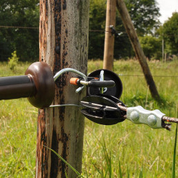 Komplett grindpaket (ledande rep, terra) för att snabbt och enkelt skapa en genomgång i ett (rep)stängsel. Enkel att öppna och stänga genom att haka i eller ut grindhandtaget i det medföljande grindankaret. Lämplig för grindgenomgångar från 3 upp till 6 meter breda.