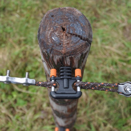 Gallagher Elastic rope gate set Multipack (4x 3/6m)This multipack contains all the elements to easily make four 3-6 metre elastic gates yourself. Cut the elastic cord to length and use the cord connectors to connect it to the gate handle and insulator. Screw the insulator and gate handle anch