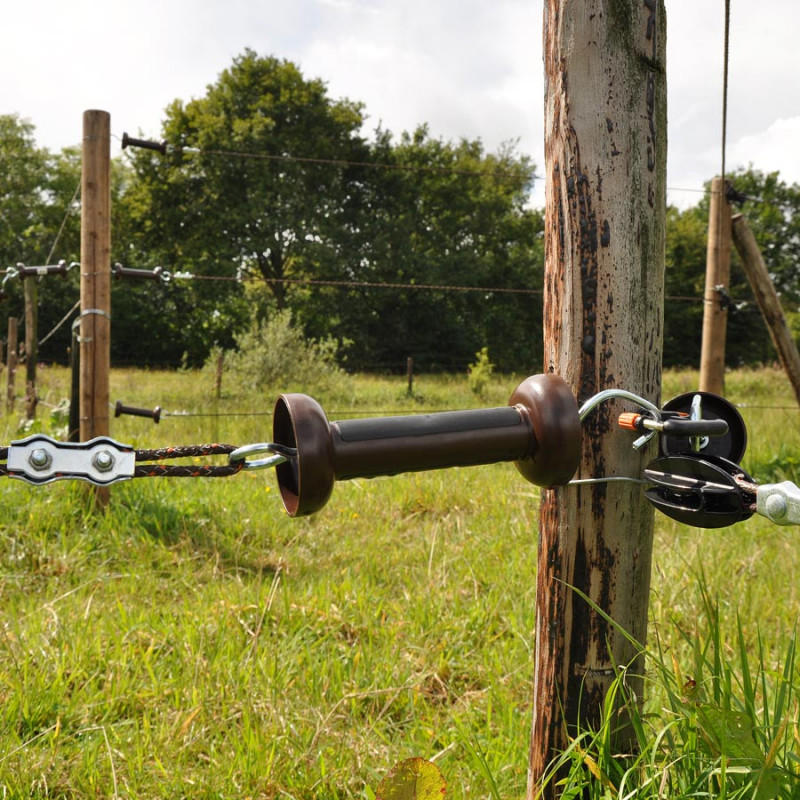 Nya Dual Purpose Handle ger flexibilitet med extra säkra anslutningspunkter, som gör det möjligt för jordbrukare att strömsätta stängslet antingen från spolen eller handtagets ände. Genom att knyta en ögla i tråden, bandet eller repet, kan den/det enkelt fästas i ringen på handtaget. ”Ring Top”-desi