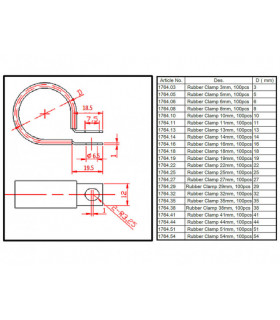 Gummiklammer i rostfritt utförande. Gummimaterial: EPDM. Bredd 12 mm. Håldiameter 6,8x8 mm/6 mm.