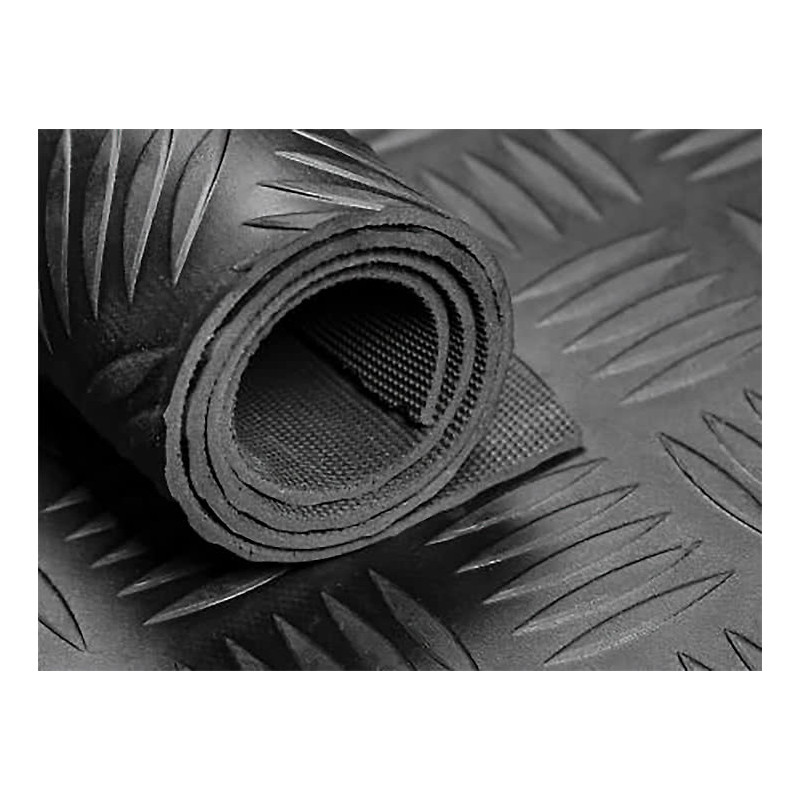 Pris per löpmeter. Gummimatta NBR 1400x3/5 mm Checker ECO. EJ oljebeständig, svart gummimatta som dämpar vibrationer, isolerar ljud och är halksäkra. Fungerar bra som golv i olika typer av fordon, släp, hästsläpvagnar, passar bra i industrilokaler utan trucktrafik samt som gen